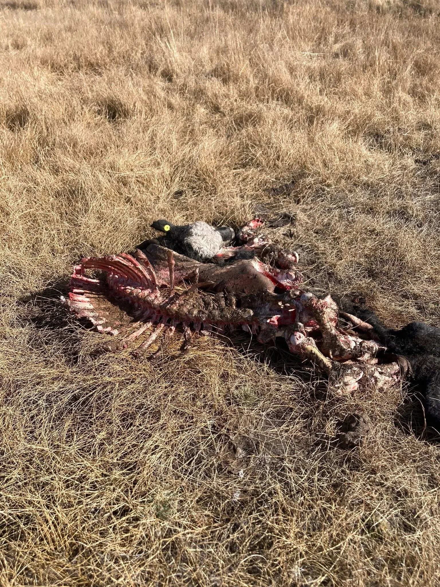 The Sierra County Sheriff, Mike Fisher, received a call from a local resident reporting that his son had discovered evidence of an animal attack on their front porch around 12:30 a.m. The resident provided photographs showing bloody wolf tracks on the porch. Sheriff Fisher coordinated with CDFW and responded to the scene. Upon investigation, it was determined that at least two wolves were involved in the attack. It is believed that an elk, while being chased by the wolves, ended up at the residence’s doorstep before ultimately being taken down and killed approximately 50 yards from the house.